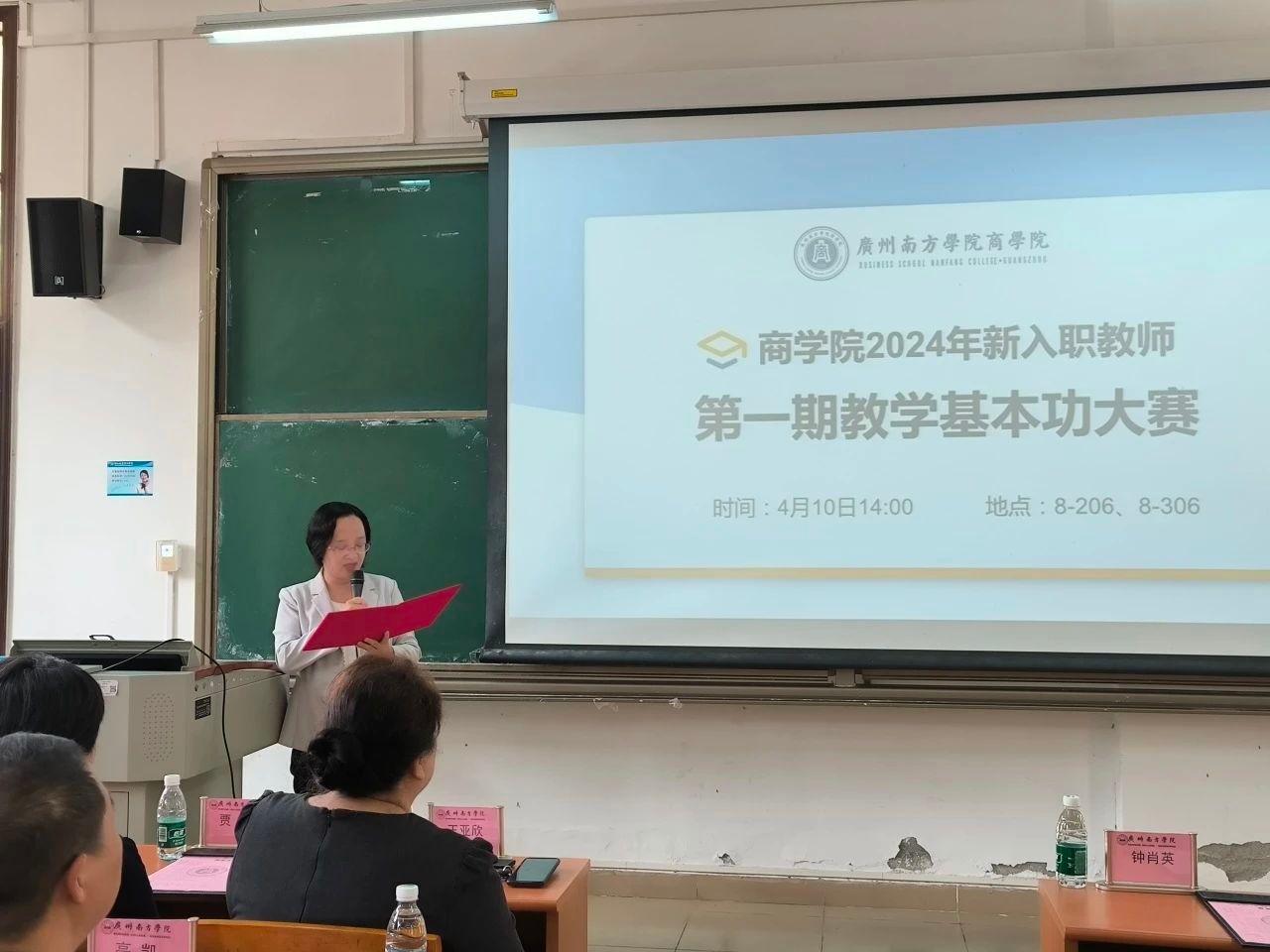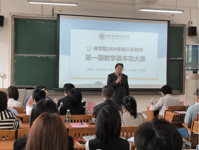 大赛伊始,钟肖英教授致辞。钟处长强调:“师者,传道授业解惑也”,作为老师,首先要站稳讲台。教学基本功是一名老师安身立命的根本,只有练好教学基本功、站稳讲台,才是一名称职的老师。钟处长希望新进教师能以本次基本功大赛为契机,进一步深入切磋教学技能,不断交流教学经验,提升自己的教学能力、快速成长,成为一名受员工欢迎的好老师。