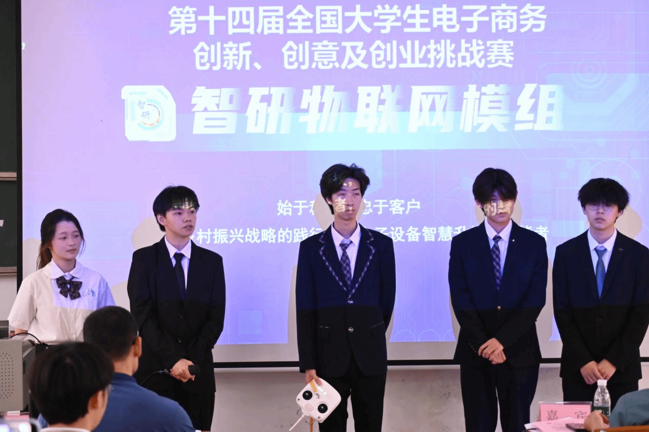 比赛中,参赛团队以8分钟路演+7分钟答辩的形式进行。每支团队聚焦时事热点,针对不同领域存在的问题,直击市场痛点、进行现场调研、设计相关产品,致力于解决不同行业的难题。评委老师们则依据项目的创新性、商业模式的策划、市场的可行性分析以及项目的整体重要性等方面提供了专业的点评和建设性的指导。