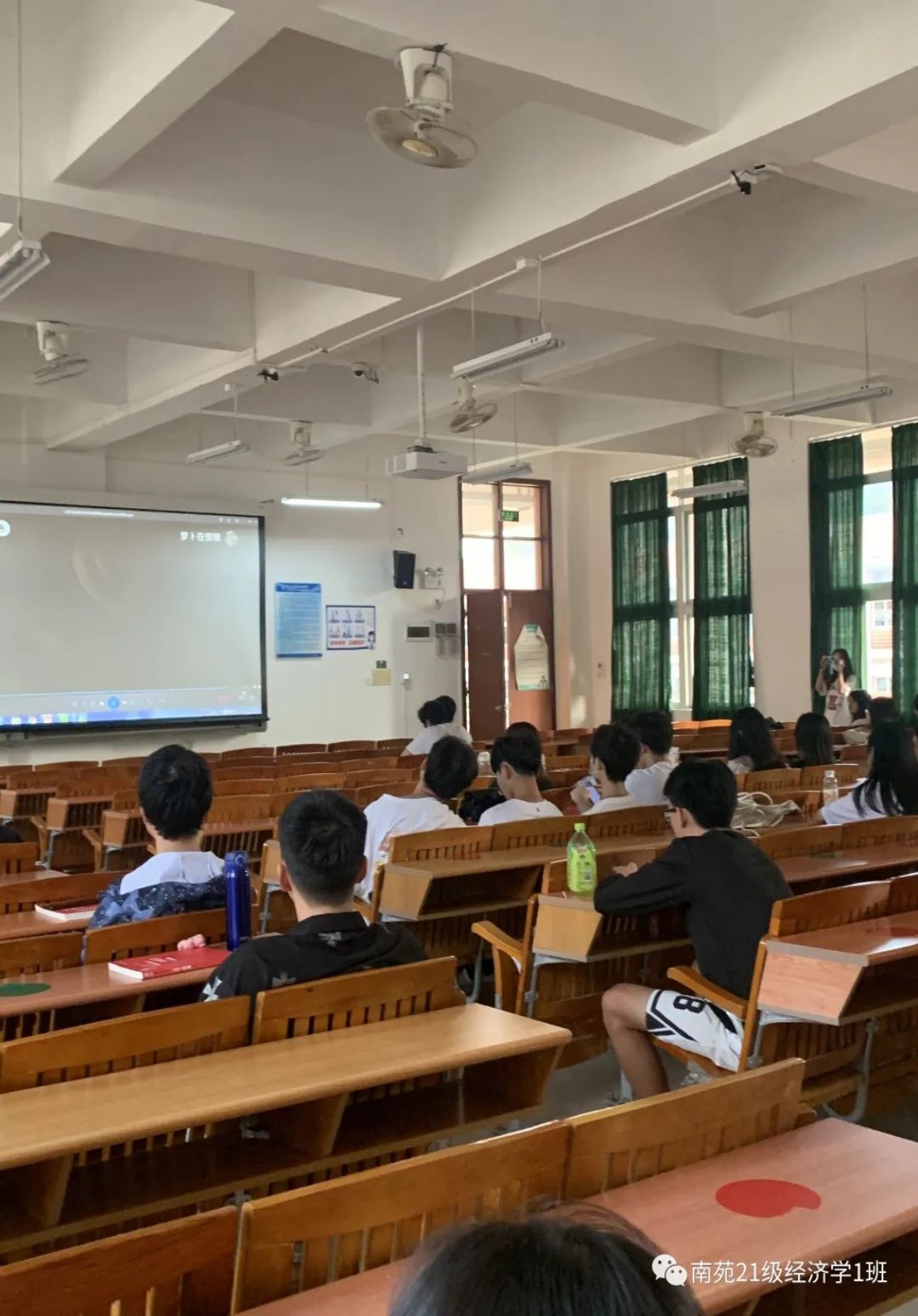 班级同学共同观看关于雷锋同志的视频。