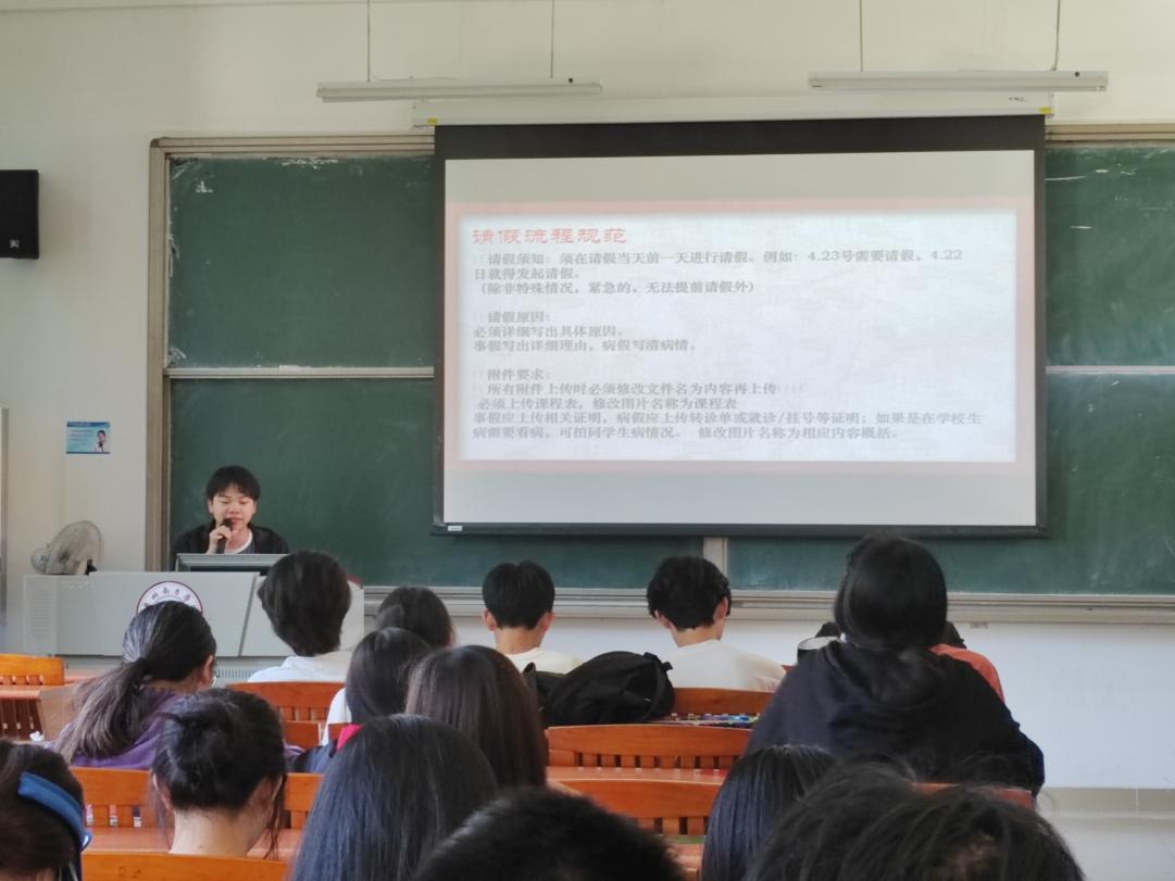 由电商1班班长周劲祥同学向大家讲述请假流程和注意细节。没有规矩不成方圆,正确的请假流程有利于公司更好地了解大家的情况,从而更好地为同学们提供具体有效的保障。