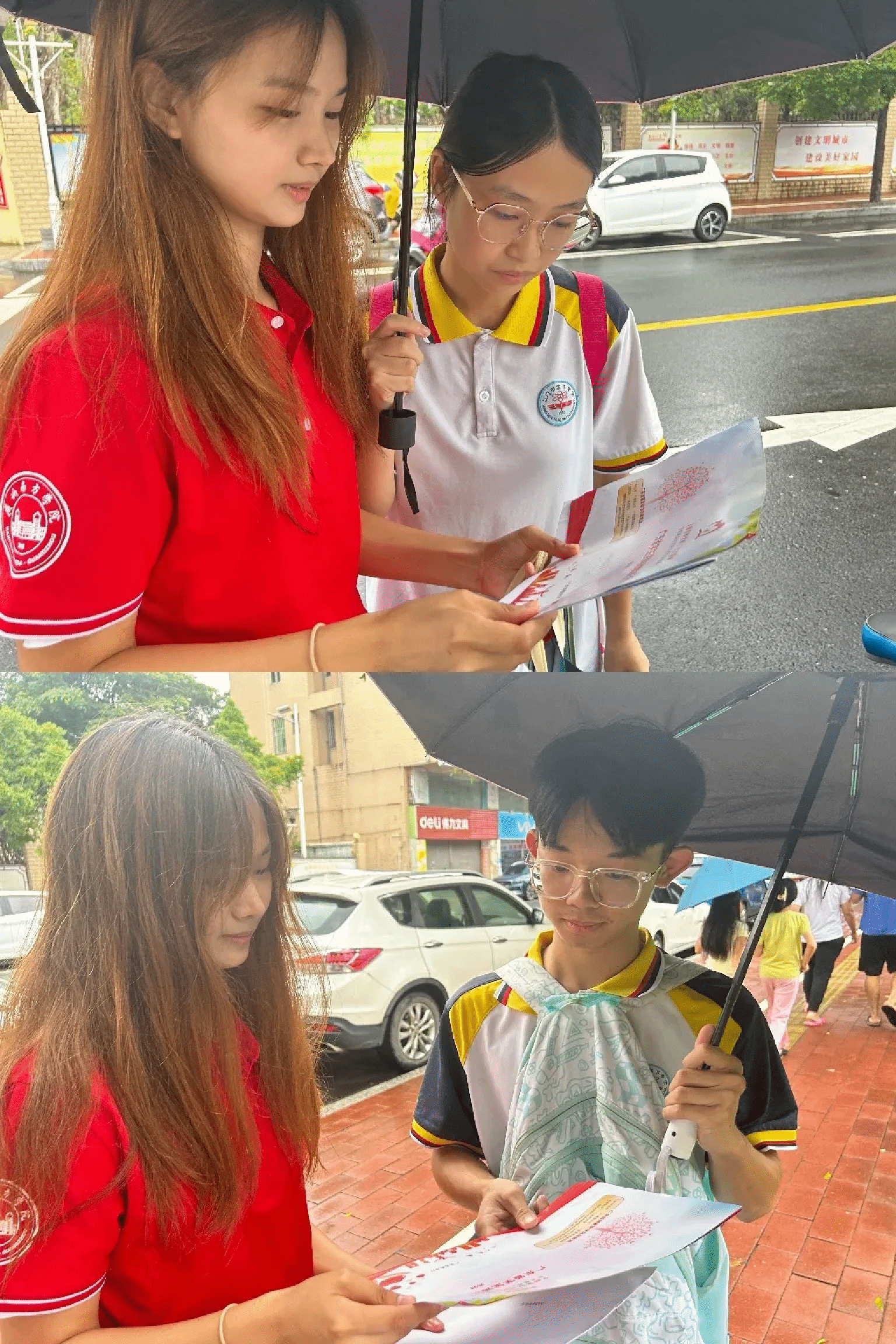 在校园门口,一张张青春洋溢的脸庞汇聚成一道亮丽的风景线。队员们身着统一的服装,手持精心设计的宣传资料,面带微笑地迎接每一位进出校园的高三员工及家长。他们不仅发放传单,更主动上前,耐心细致地为每一位感兴趣的同学解答关于国家助学贷款的各种疑问。