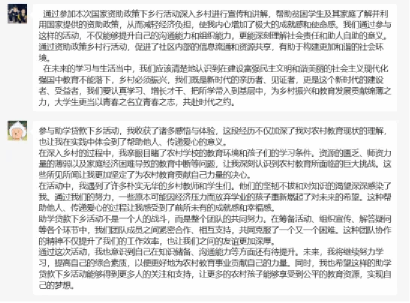 经过此次家访宣传,两位同学及其家人对国家助学贷款政策有了更加全面和深入的了解,他们纷纷表示将积极申请助学贷款,为求学之路提供有力保障。同时,此次活动也在松岭村引起了热烈反响,村民们纷纷为助学贷款政策点赞,并表示将积极向身边的亲朋好友宣传这一政策。