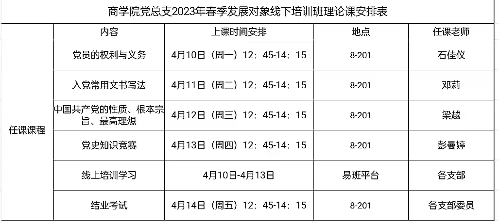 2023年春季发展对象学习时间安排如下,上课地点将另行通知,请各支部发展对象安排好时间,准时参加课程及考试。