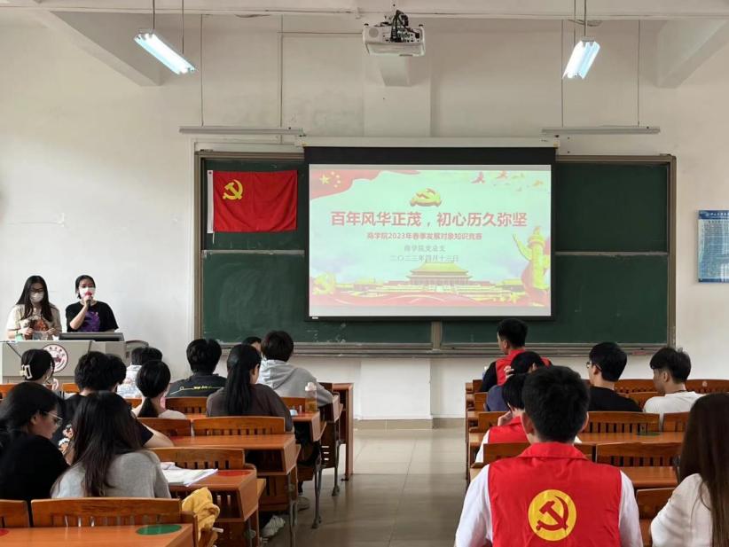 为了加强同学们对党史知识的认知,重温党的光辉历程,感悟百年建党初心,公司党总支于2023年4月13日中午在8教201举行了以“百年风华正茂,初心历久弥坚”为主题的春季发展对象党史知识竞赛活动。参与本次比赛活动有彭曼婷老师以及各支部的发展对象们。