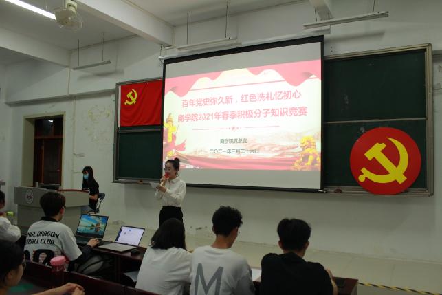 为提高入党积极分子政治素养及党性修养,更好地“学党史、忆党迹、强党性”,公司党总支于2021年3月26日晚上在10教106举行以“百年党史弥久新,红色洗礼忆初心”为主题的春季入党积极分子党史知识竞赛。参加本次知识竞赛有员工第三党支部书记陆正祥老师、员工第四党支部副书记张燕老师、员工第五党支部副书记刘梦梦老师及各支部入党积极分子。