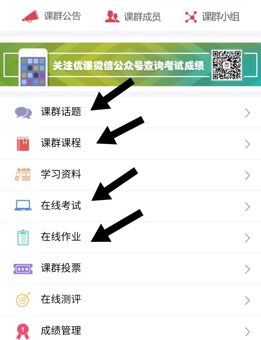 注意:请大家在规定时间内完成线上课程的学习。 在易班进行的线上课程的操作流程如下: 方法一、扫码进入课群学习