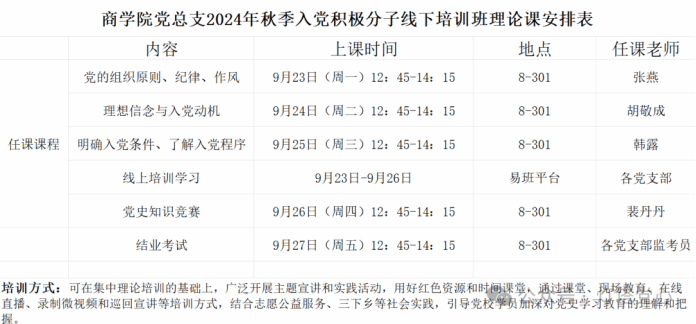 2024年秋季入党积极分子学习时间安排如下,请各位入党积极分子安排好时间,准时参加课程及考试。