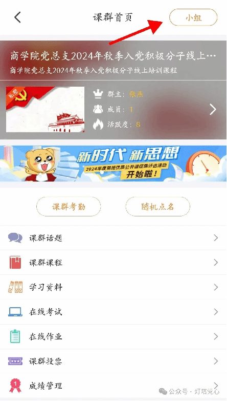 下载易班app并注册→易班app或微信扫码进入→在课群首页点击加入→登陆后再次点击加入在课群小组页面中选择自己对应的党支部→完成后在课群首页就能看到