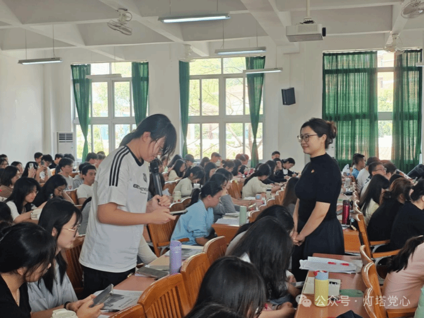 首先,韩老师逐字逐句、深入浅出地为同学们拆解入党条件的深刻内涵。从入党条件、注意事项、党员发展的工作流程和党员标准一一阐释,其间穿插着过往发展工作中的典型实例,点明各个关键节点的注意事项,让入党流程不再神秘莫测。接着,韩老师巧妙引入精心剪辑的视频资料,画面中,先辈们为理想舍生忘死,当代楷模为人民鞠躬尽瘁,他们用行动诠释着入党条件背后的磅礴力量。音画流转间,入党条件不再是生硬的条文,而是化作一个个有血有肉、可感可触的奋进身影,深深烙印在同学们心间,激发着大家对标看齐、砥砺前行的斗志。