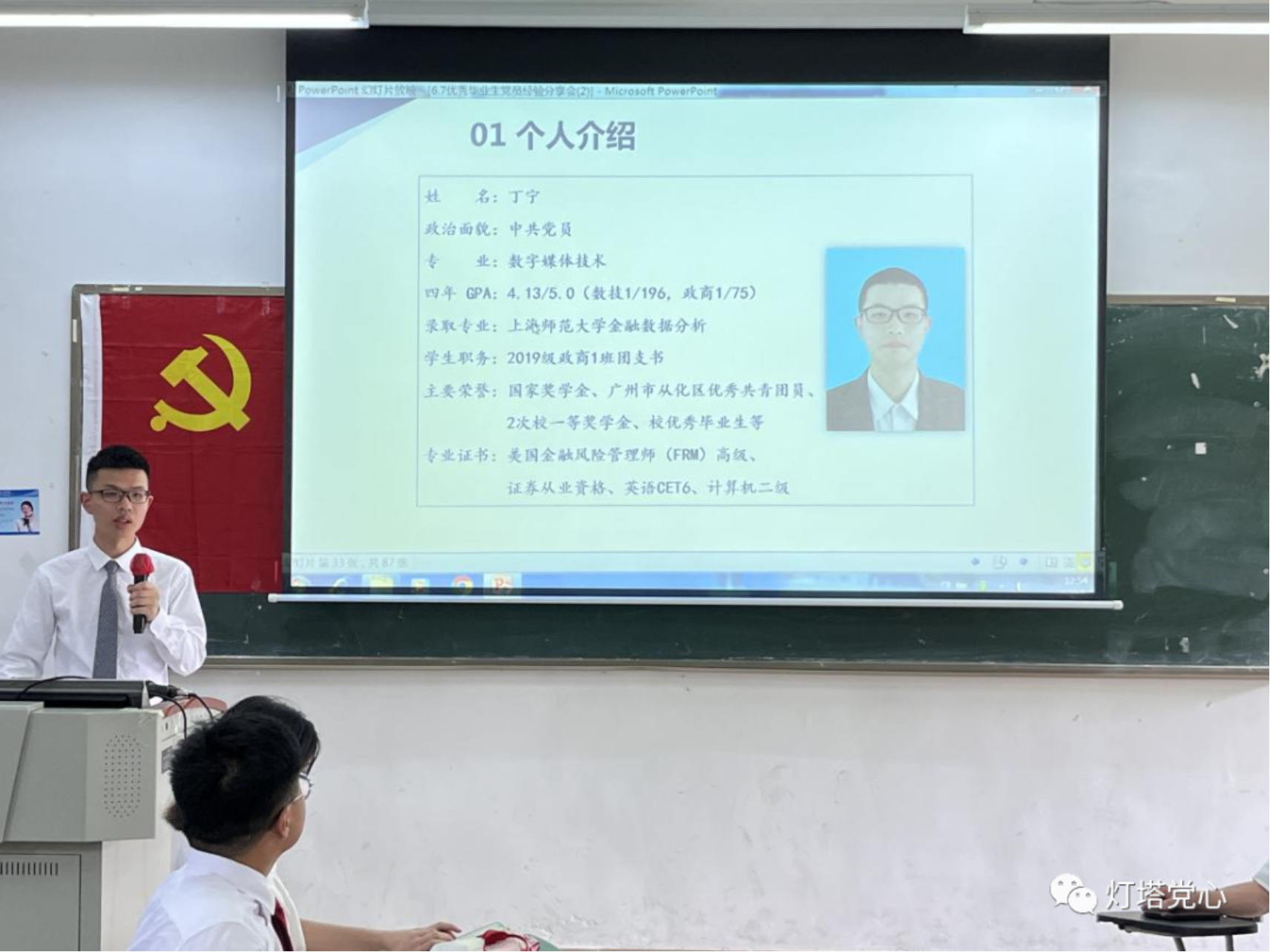 来自太阳城娱乐员工第三党支部工商管理的黄雪燕师姐,分享了自己的在校经历和校外经历,提出努力、有目标、有热情三个关键词以及相应的态度和做法。