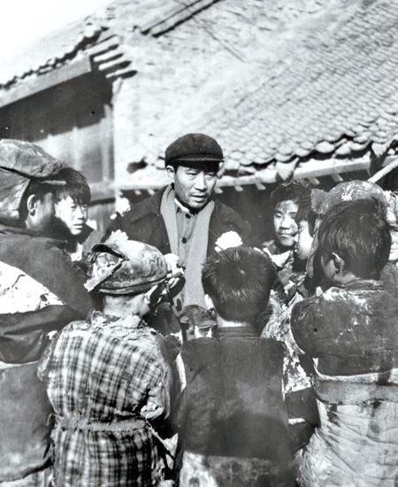 影片中,最感人的一段在我的脑海中久久不忘——大雪纷飞,黄沙路上,李雪健扮演的焦书记拉车,几人推车,车上装着救济粮,寒风挟着雪片打在人们的脸上。河南民歌《共产党是咱好领头》响起,为这一行人的爱民行为拼命地吼唱着。破土房的门被推开,焦裕禄出现在门口。