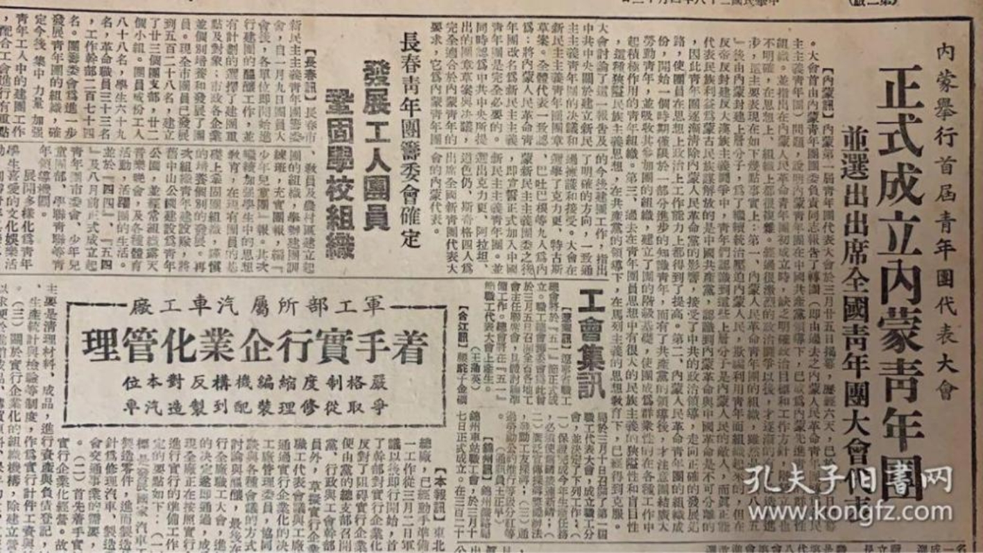 1949年《东北日报》4月13日《1-4版》中国新民主主义青年团首届全国代表大会开幕