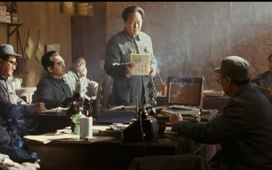 毛主席是一名令人敬佩的领导人,他的领导力在十年内战、八年抗战已经彰显无遗,三大战役以及渡江战役则为他的军事才能又一伟大的证明,并且他在与国民党的相处中不卑不亢。在电影中,着重描写了毛主席的生活细节,政治局开会的时候,毛主席把蜡烛吹灭了,摸黑继续开会,他说,留下半支蜡烛晚上还要写东西。这一细节,令人感叹,与国民党领导人形成了鲜明的对比。而在三大战役时期,毛泽东展示了一幅运筹帷幄之中,决胜千里之外的指挥家形象。毛主席曾言:“个人的事再大也是小事,国家的事再小也是大事。”我们的党始终站在人民和国家立场上,才能如此海纳百川,也正因为如此,我们才能成其大,成其雄。
