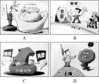 3.(单选)坚决打好“三大攻坚战”,是党的十九大提出的重大政治任务,是2020年决胜全面建成小康社会的迫切要求。以下哪幅漫画不适合用于“三大攻坚战”的宣传( )