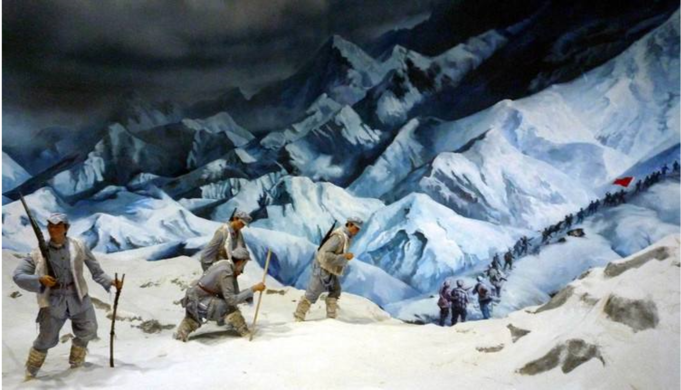 1935年6月12日至7月8日,红军继续北上,历时半个多月,忍受着寒冷与饥饿的折磨,翻越海拔4000多米的雪山。
