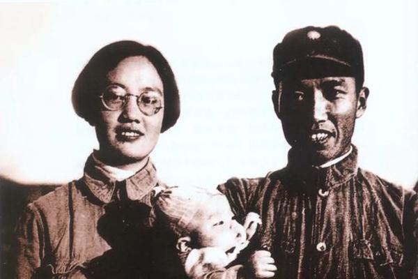 图为1940年8月因筹划百团大战军务繁忙,左权同意妻子带女儿回长安,在临别时拍的,图片中的将军露出难得的笑容。