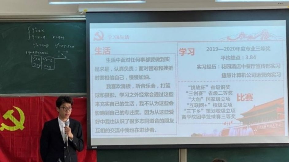 会议第一项议程,各支部发展对象候选人依次上台演讲。他们向支部大会汇报了自己对党的认识,讲述了自身的学习、生活、入党动机、所获荣誉及社会工作,向党组织汇报了自己成为入党积极分子以来的心得体会,并向党组织表明了自己入党的决心。