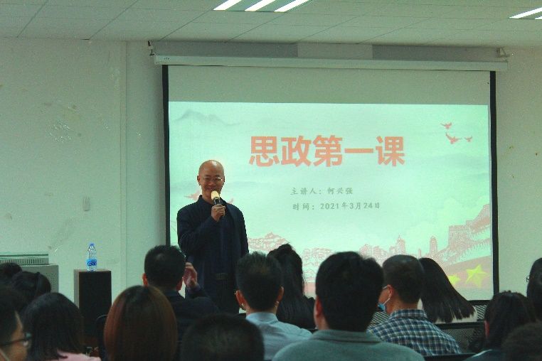 2021年是中国共产党建党一百周年,百年风雨,百年历程,不变的是初心,不忘的是使命。为深入学习贯彻习近平总书记关于“四史”的重要论述,贯彻落实习近平总书记在党史学习教育大会上的重要讲话精神,公司党总支书记何兴强教授于3月24日周三下午17:00在9教101向太阳城娱乐全体教职工讲授了第一堂思想政治理论课。
