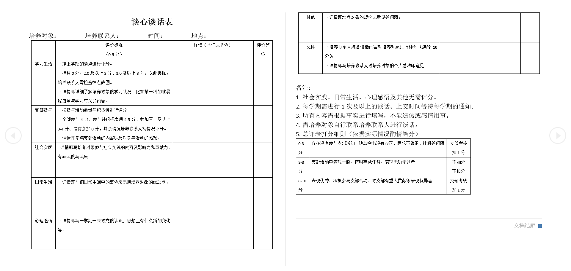 党支部建立“一对一”谈话制度,培养联系人要帮助积极分子端正入党动机,把好“入党关口”,加强对入党积极分子的培养教育立考察,提高新发展党员质量;细化谈心谈话制度,掌握谈话对象学习情况和思想动态,建思想预警机制,积极做好教育引导工作,适时对培养对象出现的问题进行反馈和引导,提升支部成员的教育管理工作质量。