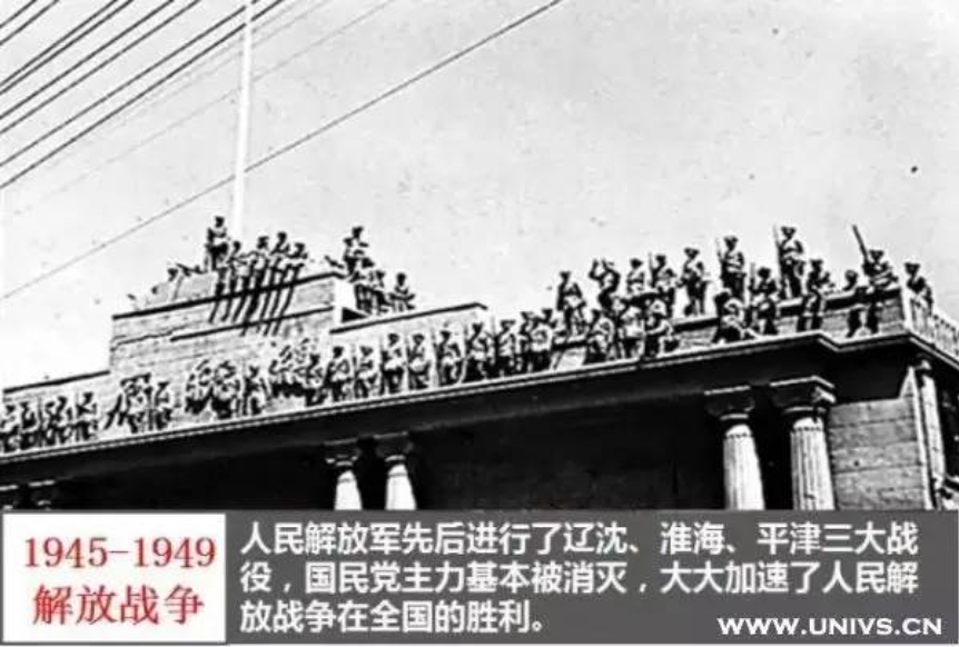4 月,毛泽东、朱德发布向全国进军的童支,百万雄师强渡长江,随后又向全国进军。国民党统治全面崩溃。