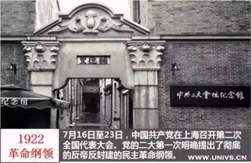 1922年7月,党召开了二大,制定出反帝反封建的革命纲领,指明了中国革命的正确方向。