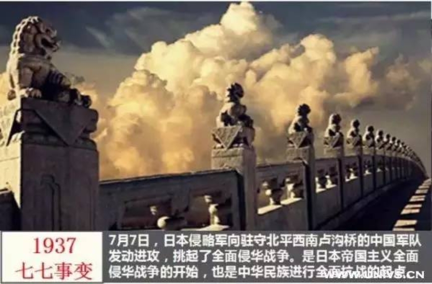 1937 年 7 月 7 日爆发卢沟桥事变。全国抗战由此开始。