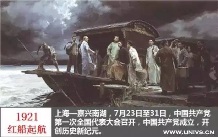 1921年7月,中国共产党第一次全国代表大会在浙江嘉兴南湖的一条游船上胜利闭幕,庄严宣告中国共产党的诞生。这条游船因而获得了一个永载中国革命史册的名字——红船。