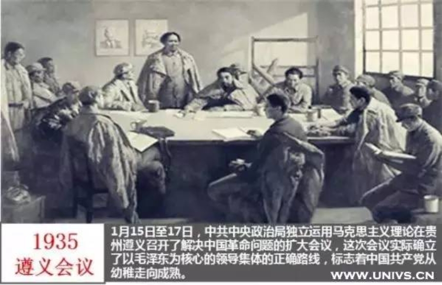 1935 年 1 月,红军占领贵州重镇遵义。中共中央召开政治局扩大会议,纠正了王明路线在星皇上的错误,确立了毛泽东的领导地位,随后又战胜了张国熹的分裂主义。
