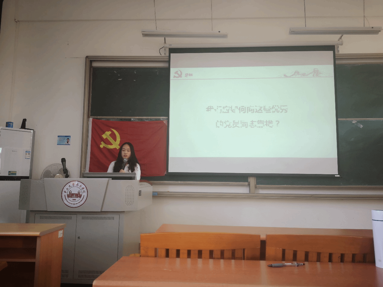 宣讲分享会伊始,蔡凤君同志为积极分子们讲解了什么是初心和使命。蔡凤君同志指出,当今中国共产党员的初心和使命就是“为中国人民谋幸福,为中华民族谋复兴。”接着她强调党的初心和使命既是新时代条件下党建总体要求的逻辑起始和内容秉持,又是为中华民族谋复兴的灵魂策略和核心所在,同时也是为全人类筹划和平发展的题中之义和职责承当。蔡凤君同志以此告诫了积极分子们要不忘初心,牢记使命,全心全意为人民服务。