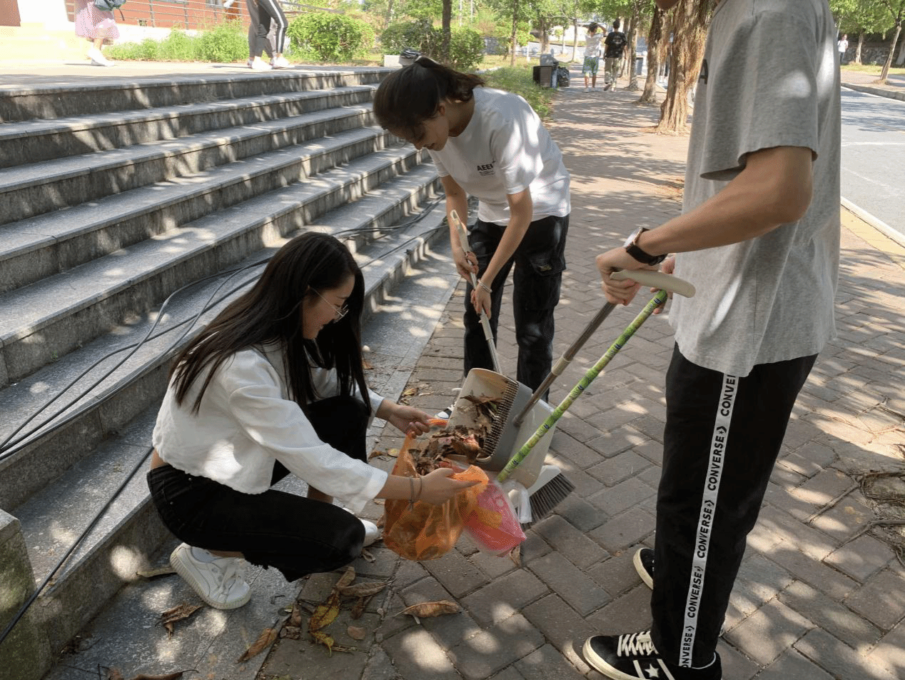 2019年11月16日下午,志愿服务小组17人对八教到九教的路段进行了垃圾清理。活动开始前,组长将大家分成两批,一批处理九教长廊的垃圾,一批清扫八教和九教之间的落叶。在活动过程中,小组成员积极参与,每个人都在全心全意做事,沉浸在服务校园的工作中。