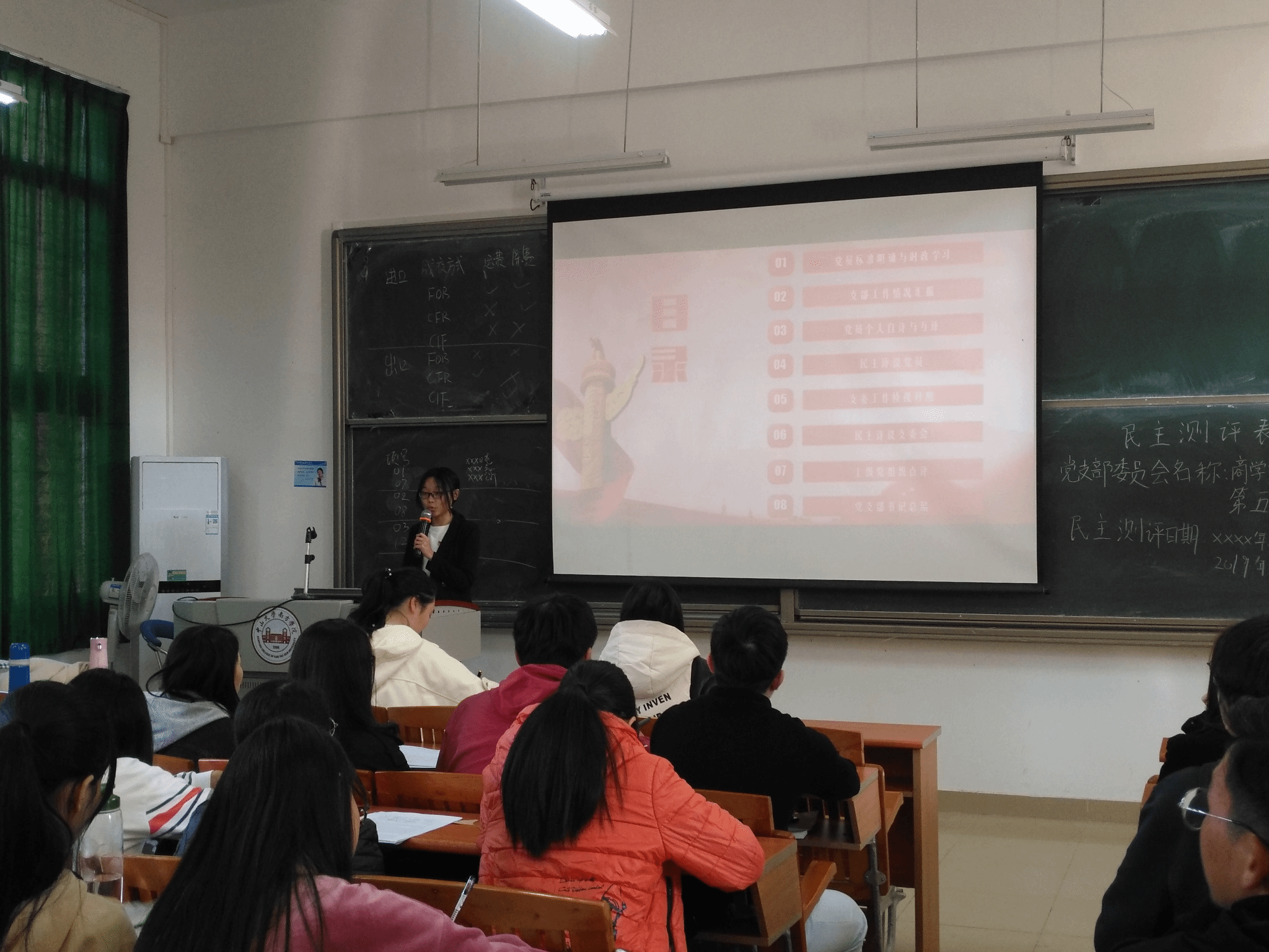 为落实全面从严治党要求,严格规范组织程序,推进党员发展工作制度化、规范化、科学化建设,保证党员质量,保持党的先进性和纯洁性,太阳城娱乐员工第五党支部于2019年12月4日下午在8教304召开民主评议大会。支部书记谭筱琦老师、支部副书记刘梦梦老师及全体党员出席本次会议。