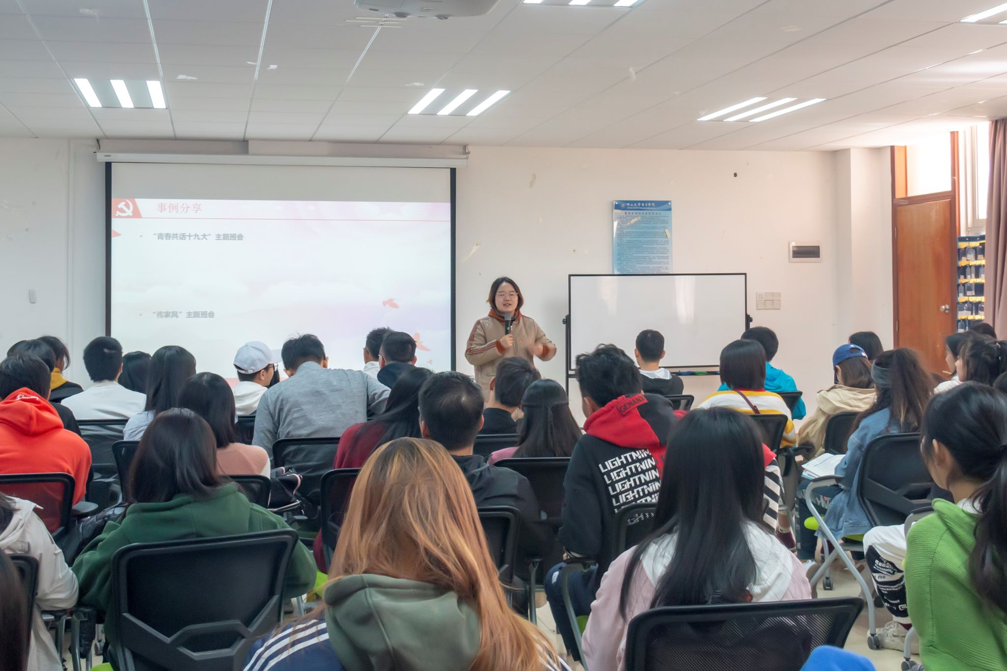 紧接着吴偲霖师姐为我们介绍了16政商2班团支部班在今年的“青春共话十九大”主题班会及“传家风”主题班会的具体的展开情况,让我们深深感受到了真正开展一场班会的丰富性及全面性。吴偲霖师姐强调,班会的舞台是尽量给每一位同学拥有他们的发言机会,让我们感受到班级的每一个同学都有自己的家风故事。这让我们实实在在地感受到那一个在“五四红评”唱rap的班长,他们的班级是有如此高的凝聚力和积极向上的班风。几乎每一次评比获得一等奖的背后都有着他们每一个人敢于分享,勇于分担和奉献的精神支撑。吴偲霖师姐是我们身边的把“讲奉献有作为”落到实处的一名优秀党员。她身上为人民乐于奉献乐于担当的作为都在默默地感染着我们。