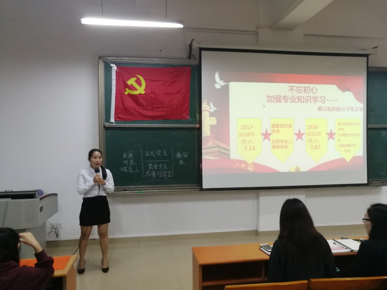积极分子朱文学表示不忘初心,坚持追梦。她认为做一名合格的党员不仅要加强自身的修养,还要不断加强专业知识的学习。