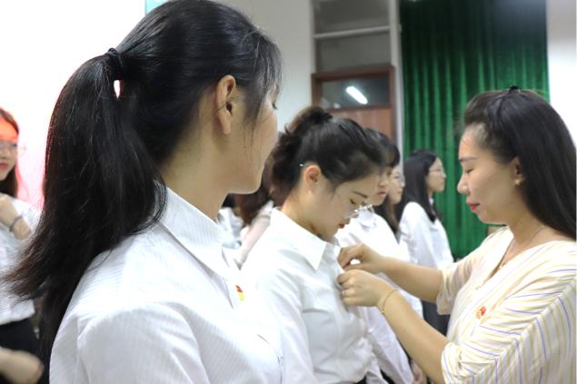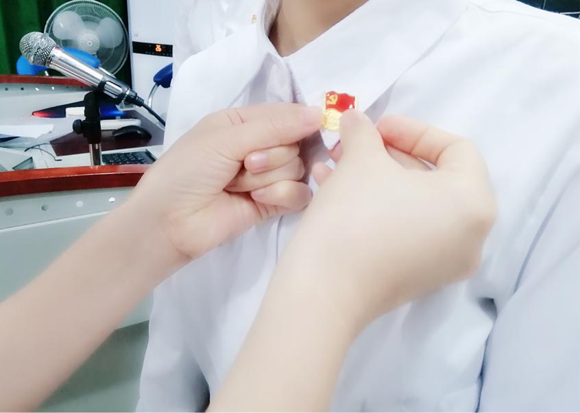 随后由各支部书记带领党员、预备党员进行入党宣誓,并为预备党员佩戴党徽。