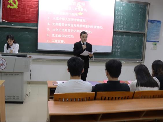 发展对象向党支部汇报自己在考察期内的思想变化历程与学习成果,以及自身各个方面的情况。并明确自己的入党动机,坚定自身的入党决心,努力向党组织靠拢,时刻准备着接受党组织的考验。之后与会党员踊跃发表意见并且完成了激烈的问答环节,经入党介绍人发言、支部委员汇报考察意见以及正式党员不记名投票,同意接收考察通过的发展对象为预备党员。