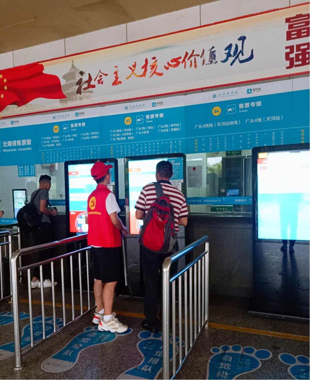 对于一些行动不便的老人和孕妇,同志们更是积极提供帮助,全程协助他们,帮助他们购买车票和协助其拖运行李上车,同志们用实际行动来帮助他人,让他们感受到这个社会的温暖无处不在。