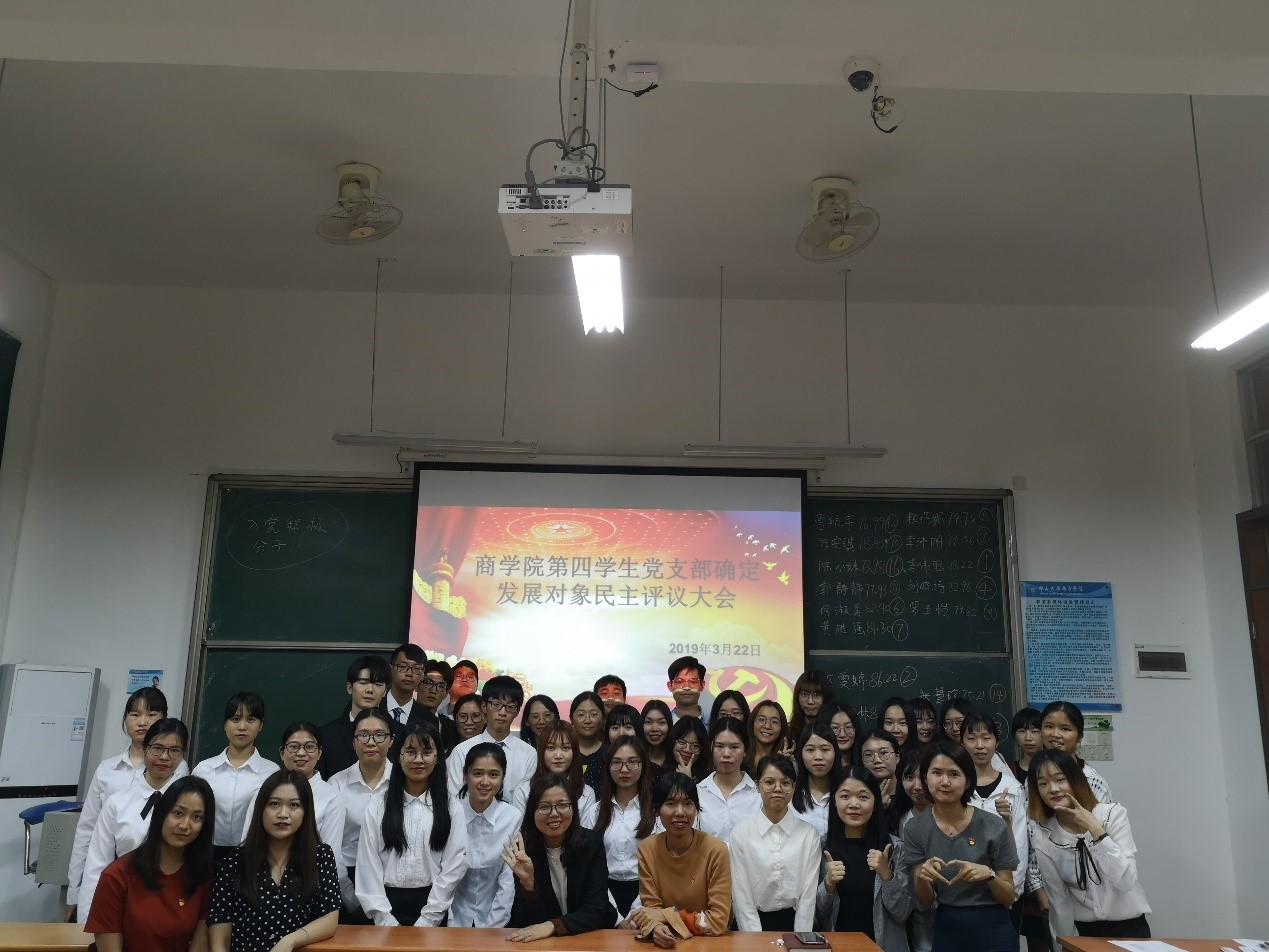 2019年3月22日晚上18:30,太阳城娱乐第四员工党支部确立发展对象民主评议大会于8教205隆重召开。参与大会的人员有第四员工支部书记韩露老师,副书记张燕老师,支部员工党员,预备党员以及发展对象候选人。会议由代理宣传委员黄舒琪同志主持。