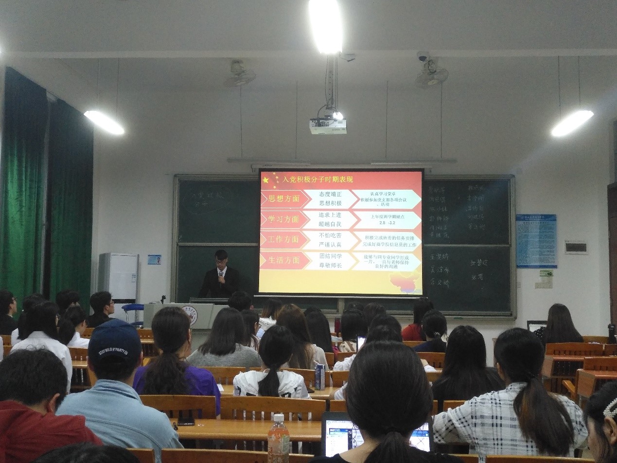 会议第一项议程,入党积极分子的自我介绍,在播放国际歌之后,入党积极分子们逐个上台,从思想,生活,工作,目标这几个方面介绍自己的老员工活。这项会议内容,让众位入党积极分子们在完成对自己的老员工活总结的同时,认识到了自己的不足。还能够在与自己同时期的朋友比较的同时观察其他入党积极分子的优缺点,取其所长,避其所短,慢慢向着各自的共同目标而努力。