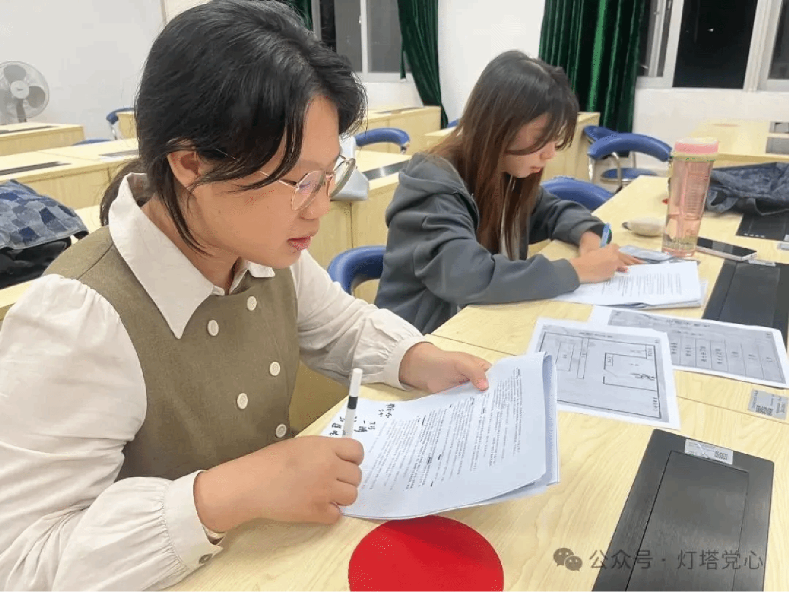 故事的剧情在主持人的推进下缓缓展开,党支部成员们面带严肃地沉浸在各自的角色扮演中。随着故事的发展,恰到好处的音效和背景音乐增强了情感共鸣。每一次关键台词的落下,现场都伴随着窃窃私语,党支部成员们纷纷推测角色之间的关系,谨慎地发言避免掉入潜藏的阴谋中,现场气氛仿佛又回到了那个动荡不安的年代。