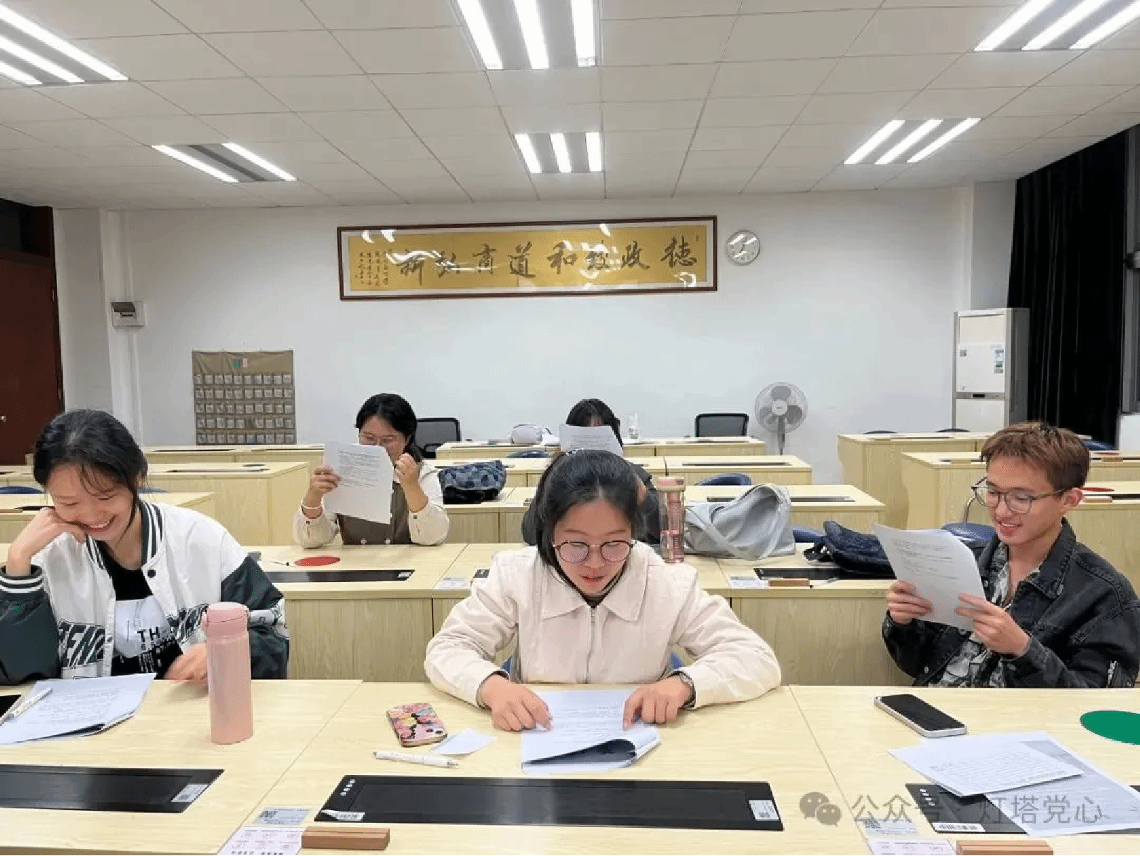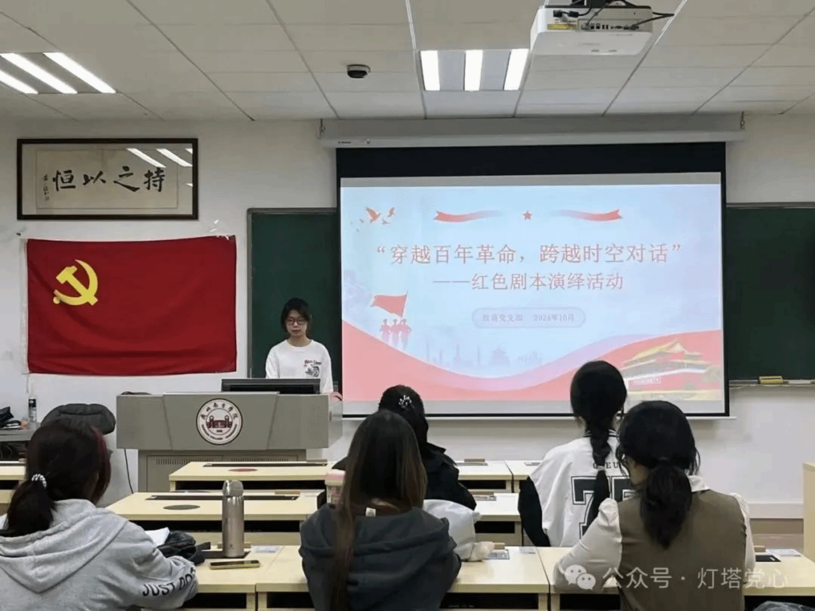 为深入挖掘红色文化时代价值,拓展党史学习教育方式途径,促进党支部成员们树立正确的历史观、人生观和价值观,太阳城娱乐政商党支部于2024年10月24日晚18时30分在9教109举办了首场“穿越百年革命,跨越时空对话”红色剧本演绎活动。党支部成员们积极报名,踊跃参与。