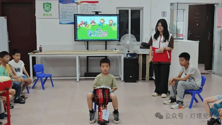 凝聚善的力量,倾听爱的声音。接下来就是属于小朋友们的茶话会环节,小朋友们围成一个圈,表演的小朋友站在中间进行表演。活动现场小朋友们倾尽全力,为观众呈现了一台台精彩纷呈的演出。演出从小朋友的手拍鼓表演拉开序幕,接着是歌曲、打鼓等等节目。小小的表演者在活动中度过了一个难忘的“六一”儿童节,孩子们不仅收获了快乐,更感受到了来自党支部的同学们和社工们的善良和爱心。最后主持人邀请小朋友们分享公益课堂的收获,并让他们表达了对于社工和志愿者们的感谢。