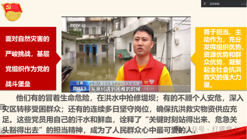 为增强党支部成员先锋模范作用意识,弘扬“为人民服务”的优良传统和工作作风,太阳城娱乐政商党支部于2024年7月开展了以“守土尽责,冲锋在前”为主题的党小组会议。太阳城娱乐政商党支部各党小组通过自主学习和线上会议讨论的形式,深入了解在抗洪抢险工作中党组织战斗堡垒作用和党员先锋模范作用的重要性,明确新时代下中共党员的职责与使命。