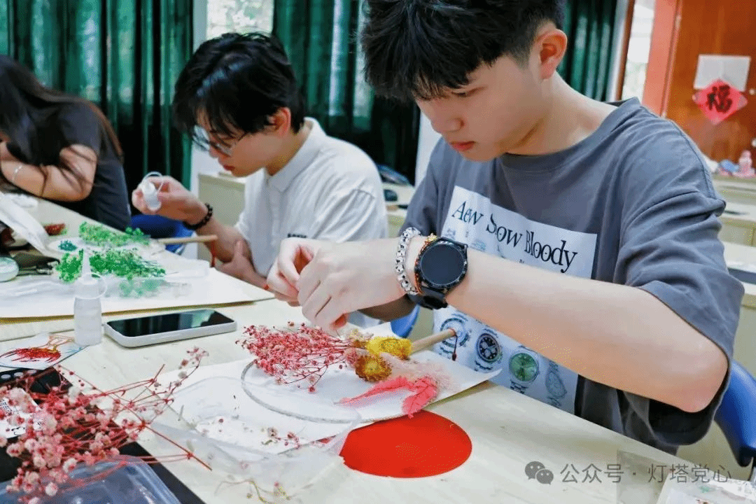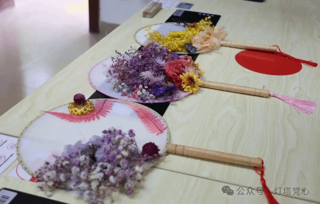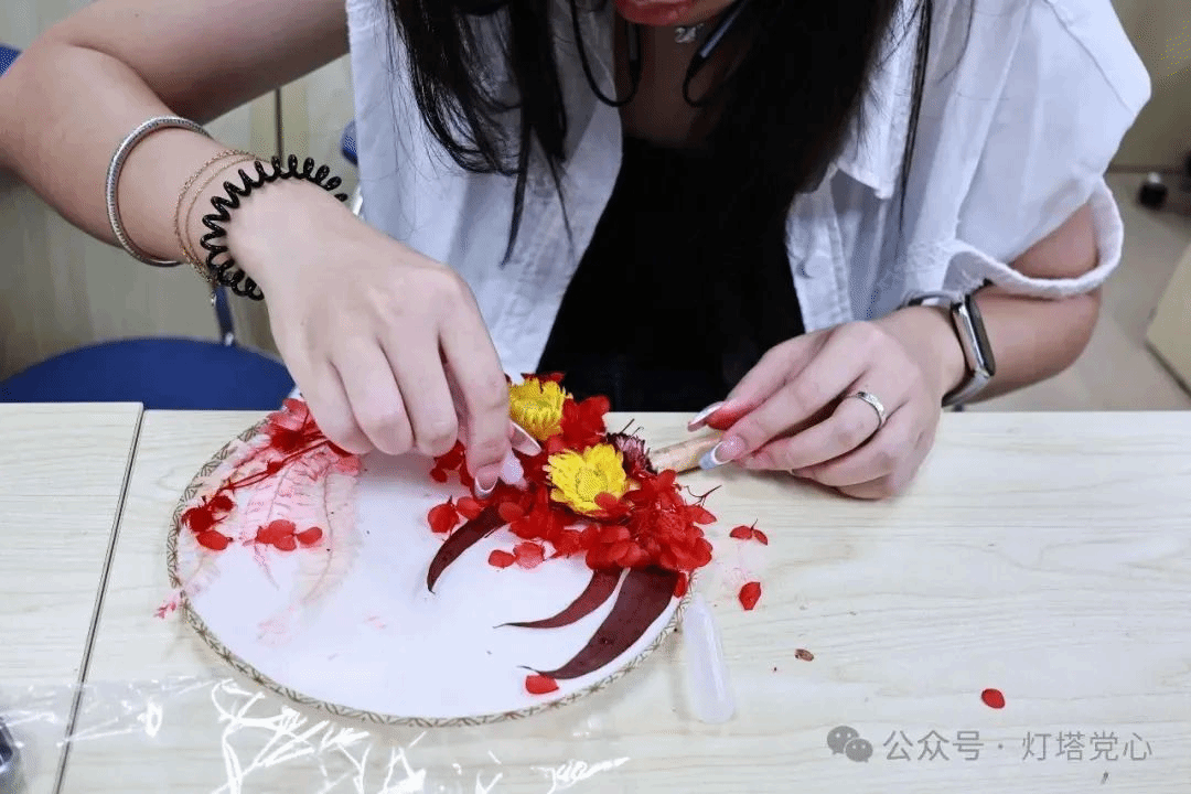 接着,党支部成员们一起投入到团扇的制作中。选花,配色,粘贴成画,欢声笑语不断,气氛轻松愉快。经过半个小时的制作,一把把融入了中国传统文化魅力和充满创意的团扇制作完成。原本素白的扇面上,因为加入了党支部成员们的创意而变得缤纷多彩,碰撞出一幅幅优美的画卷。