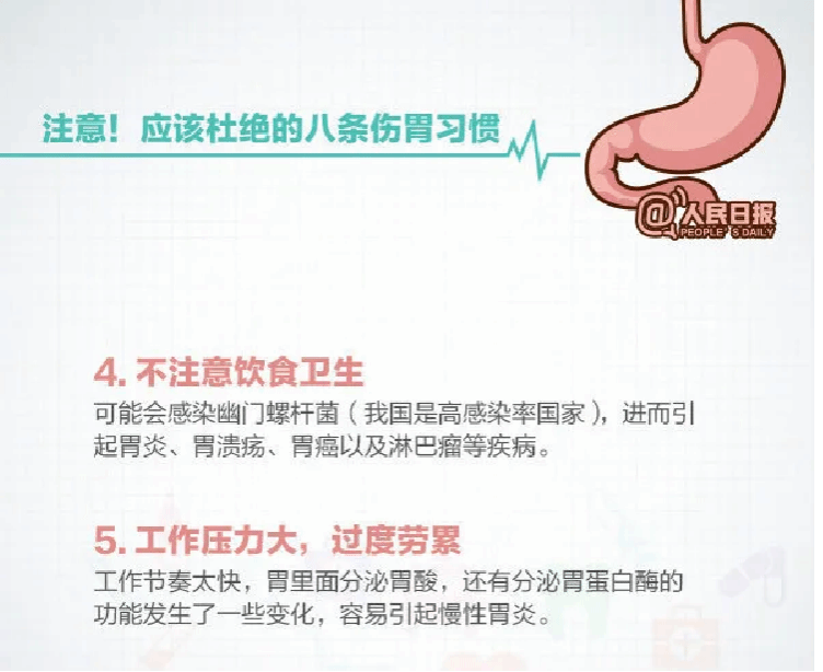 其次,就是生活节奏。时代节奏的加快让许多年轻人肩负了许多压力,导致加班熬夜已成常态化,作息时间紊乱。加上人的胃黏膜上皮细胞的寿命很短,平均2~3天就要更新再生一次,而这个过程一般是在夜间胃肠道休息时进行的。如果你经常在夜间进餐,胃肠道得不到必要的休息,胃黏膜的修复就不能顺利进行,时间长了就会形成各种胃病。