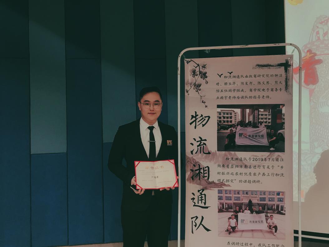 2019年10月 中山大学南方公司“暑期三下乡”社会实践活动评优一等奖;