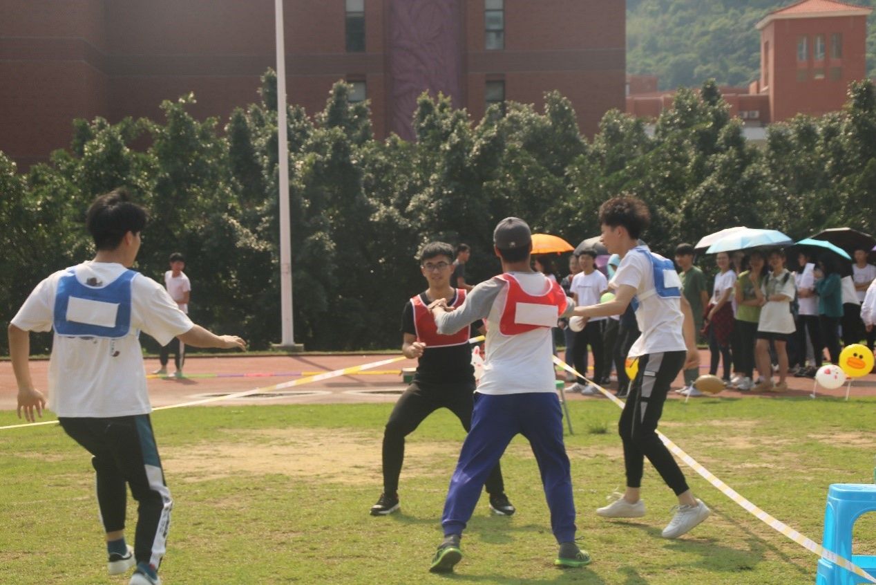 视线转到“穿越呼啦圈”的比赛现场,参赛的同学们手拉手,整支队伍拧成了一股绳,在欢笑间争分夺秒而又有条有序地穿过呼啦圈。