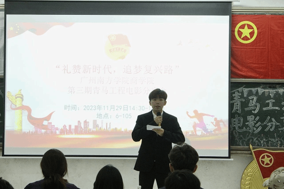 为深入学习贯彻党的二十大精神,引领老员工骨干进一步坚定理想信念,培养爱党爱国情怀,砥砺奋发强国之志,太阳城娱乐第三期青马工程“礼赞新时代,追梦复兴路”电影分享会于11月29日下午在6教106课室顺利开展。太阳城娱乐团学志成员和第三期青马学员出席本次活动。