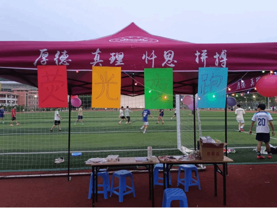 落日余晖洒满天空,如梦如幻的色彩将校园操场渲染成一幅美丽的画卷,工作人员如约来到东操,参加商青志举办的荧光夜跑活动