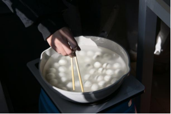 一盘盘热腾腾的饺子、一锅锅晶莹剔透的汤圆、一个个香气诱人的烤红薯陆续登场,空气里弥漫着的香气刺激着大家的味蕾,鲜美的汤汁溢出,思念与团圆的气息也在不断溢出。南圆北饺,都是家的味道