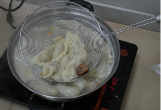 接下来到了煮饺子的环节,一盘排列整齐的饺子滑入滚水中,饺子在水中上下翻腾,它们逐渐变得透明,馅料的轮廓隐约可见,散发出诱人的香气